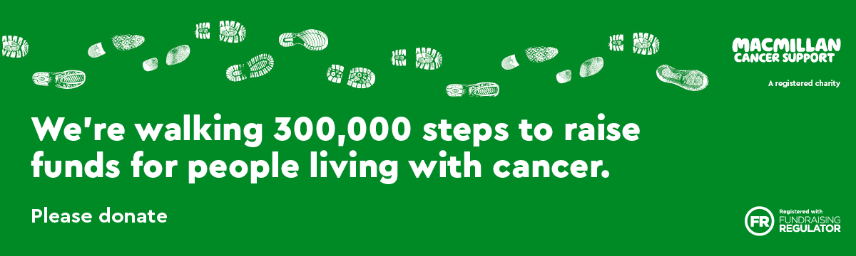 Hi, we’re taking part in Step to Support for Macmillan Cancer Support, in memory of a very special and inspirational person - Alastair Robertson 💚